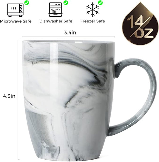 Smilatte 14 OZ Marble Coffee Mugs, M068 Novelty Marble Ceramic Cup for Home and Office, Microwave Dishwasher Safe, Set of 4, Gray