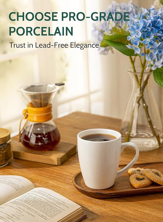 Sweese Porcelain Coffee Mugs - 16 Ounce - Set of 6, Cups for Latte, Hot Tea, Cappuccino, Mocha, Cocoa, White