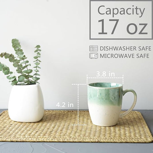 Bosmarlin Ceramic Coffee Mug Set of 4, 17 Oz, 4 Colors to Choose, Tea Cups, Dishwasher and Microwave Safe, Reactive Glaze (Green)