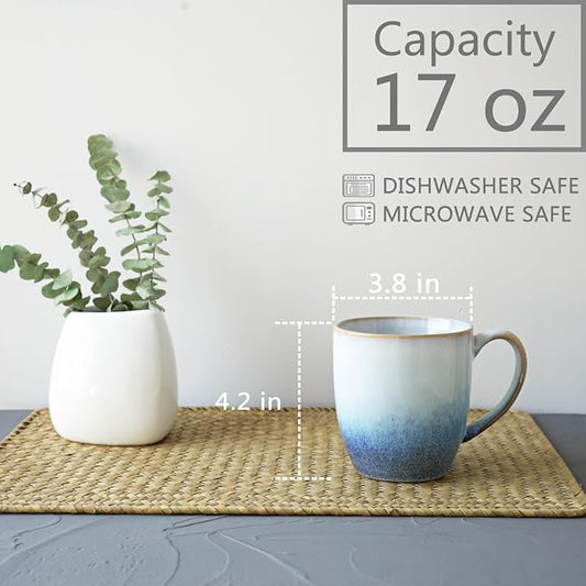 Bosmarlin Ceramic Coffee Mug Set of 4, 17 Oz, 3 Colors to Choose, Tea Cups, Dishwasher and Microwave Safe, Reactive Glaze… (17 Oz, Blue)