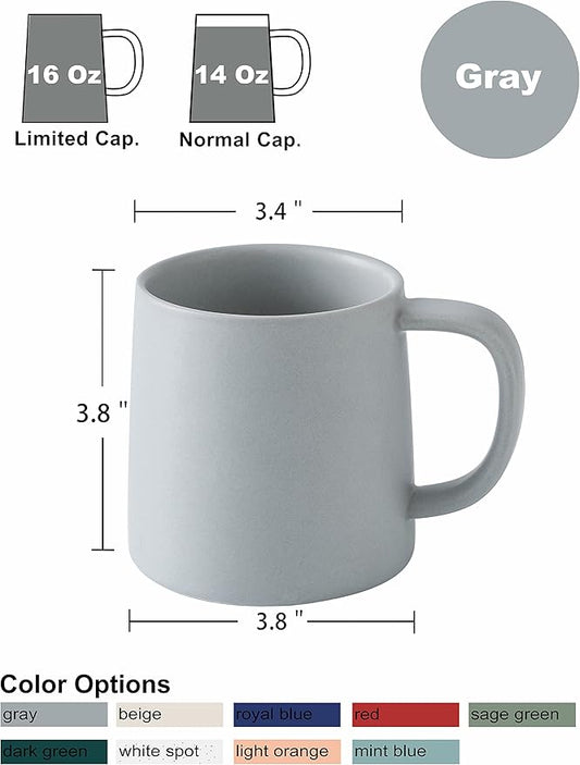 T-WARE 16 Oz Coffee Mugs, Matte Light Grey Mug Set of 4, Ceramic Mugs Coffee, Solid Color Coffee Cups Ceramic