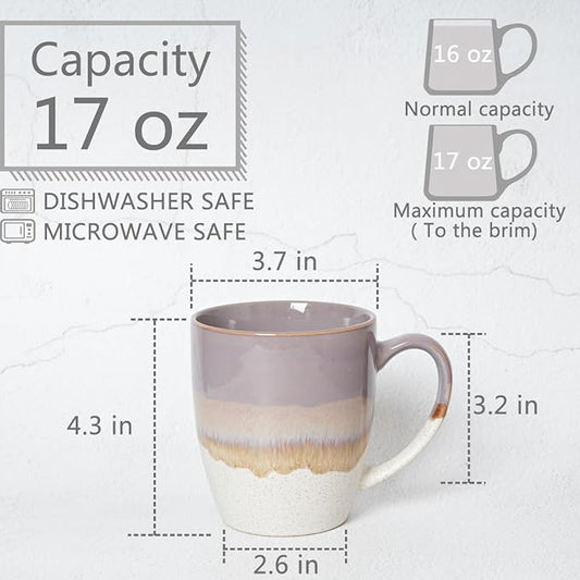 Bosmarlin Ceramic Coffee Mug Set of 4, 17 Oz, Coffee Cups with Big Handle, Microwave Safe, Unique Reactive Glaze