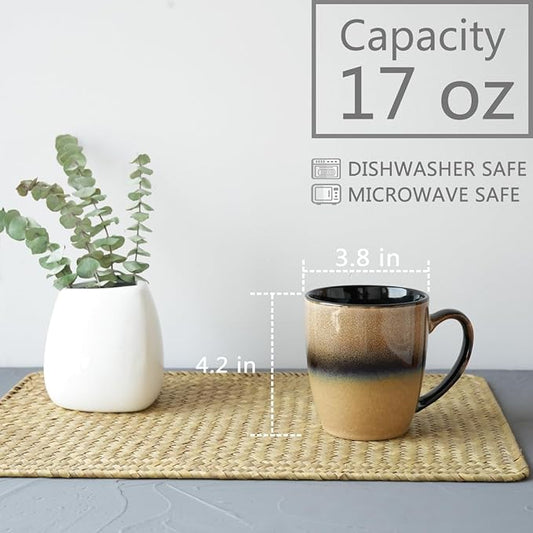 Bosmarlin Ceramic Coffee Mug Set of 4, 17 Oz, 4 Colors to Choose, Tea Cups, Dishwasher and Microwave Safe, Reactive Glaze (Walnut)