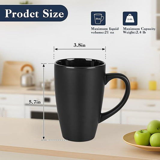 20oz Extra Large Ceramic Tall Coffee Mugs Set for Coffee Tea Hot Cocoa set of 4 Dishwasher & Microwave Safe (Matte black)