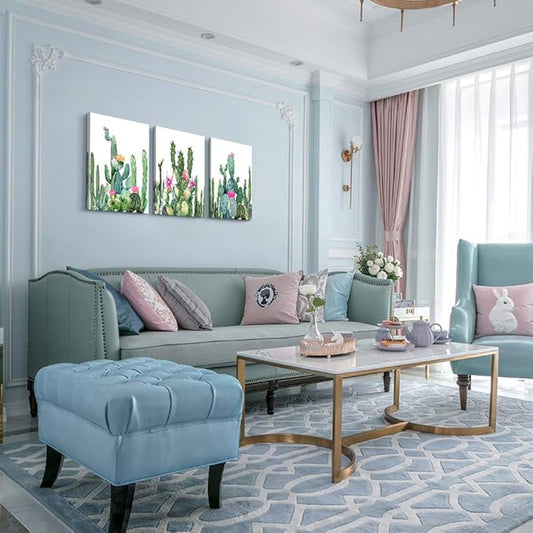 Canvas Wall Art for living room bathroom Wall Decor for bedroom kitchen artwork Canvas Prints green watercolor cactus painting 3Pieces abstract Modern framed office Home decorations family picture