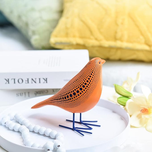 Quoowiit Bird Figurine, Modern Sculpture and Statues for Home Decor, Animal Statues for Bookshelf, Table, Entryway, Fireplace, Resin Decorative Sculpture with Chic Polka Dots Art Design (Orange)