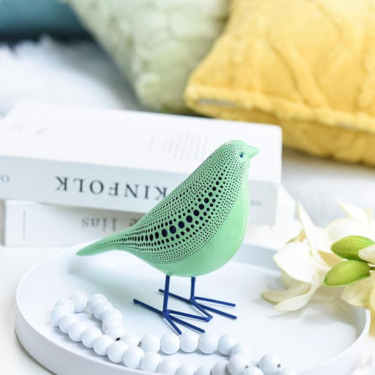 Quoowiit Bird Figurine, Modern Sculpture and Statues for Home Decor, Animal Statues for Bookshelf, Table, Entryway, Fireplace, Resin Decorative Sculpture with Chic Polka Dots Art Design (Green)