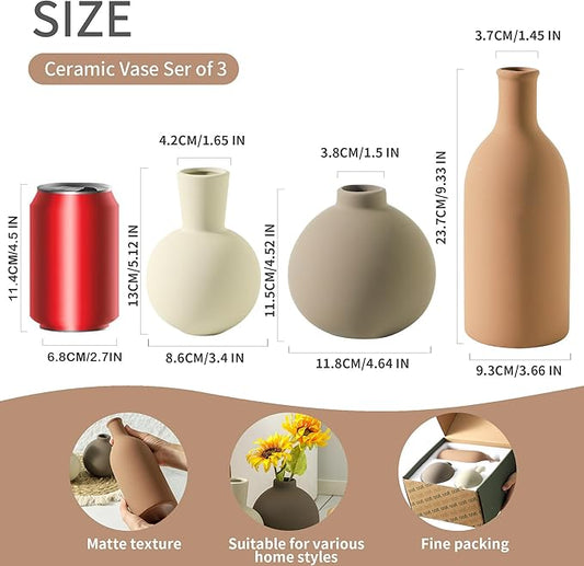 Ceramic Vase Set of 3 | Vases Home Decor | Decorative Flower Table Rustic Vase Modern Decor Vase Neutral Pottery Vases for Entryway Mantel Living Room Kitchen Bedroom -Multicolor Modern