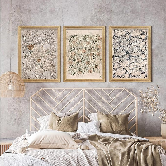 arfitest Vintage Plant Frame Wall Art Prints Set of 3 Antique Sketch Wall Art Decor Neutral Flowers Canvas Wall Art Flower Pictures Farmhouse Paintings Vintage Flower Artwork for Room Bedroom 16x24 Inch