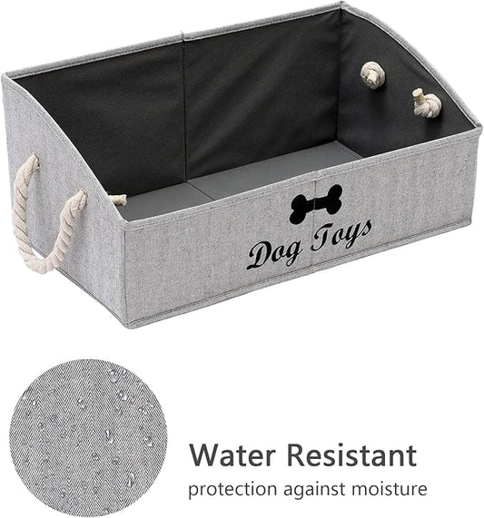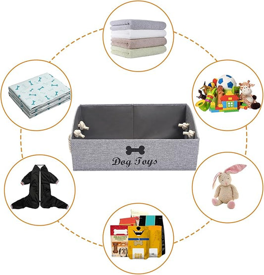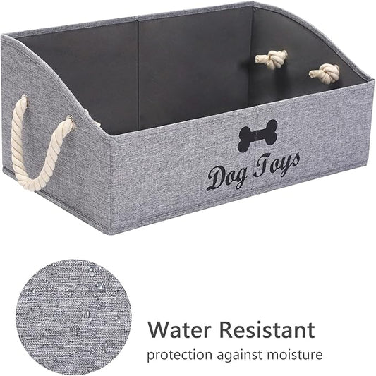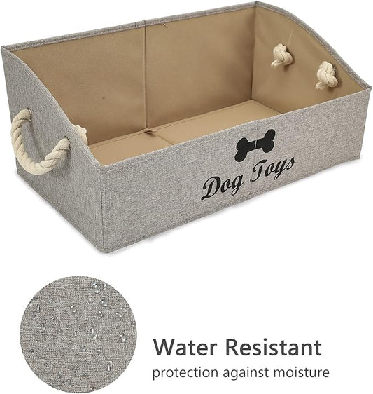 Geyecete Large Dog Toys Storage Bins-Foldable Fabric Trapezoid Organizer Boxes with weave Rope Handle,Collapsible Basket for Shelves(Snow Grey-DOG)