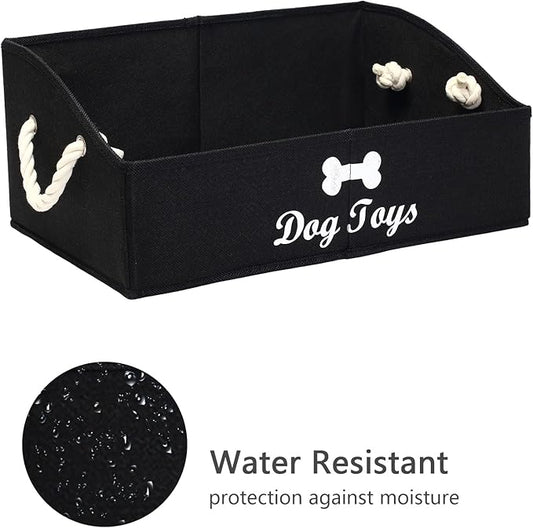 Geyecete Large Dog Toys Storage Bins - Foldable linen Trapezoid Organizer Boxes with weave Rope Handle, Collapsible Basket for Shelves (Black-DOG)