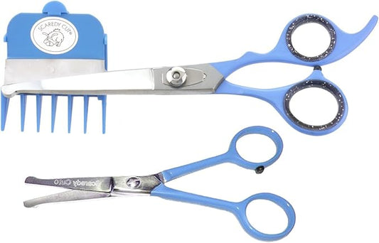 SCAREDY CUT Silent Pet Grooming Kit for Dogs, Cats and All Pet Grooming - A Quiet Alternative to Electric Clippers for Sensitive Pets (Right-Handed Blue)