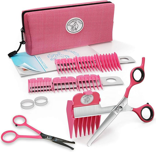 SCAREDY CUT Silent Pet Grooming Kit for Dog, Cat and All Pet Grooming - A Quiet Alternative to Electric Clippers for Sensitive Pets (Right-Handed Pink)