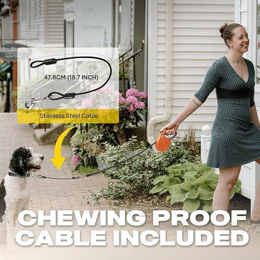 Fida Retractable Dog Leash, 16ft Heavy Duty Pet Walking Leash for Medium/Large Dog up to 110 lbs, Tangle Free. One-Hand Brake (Large, Orange)