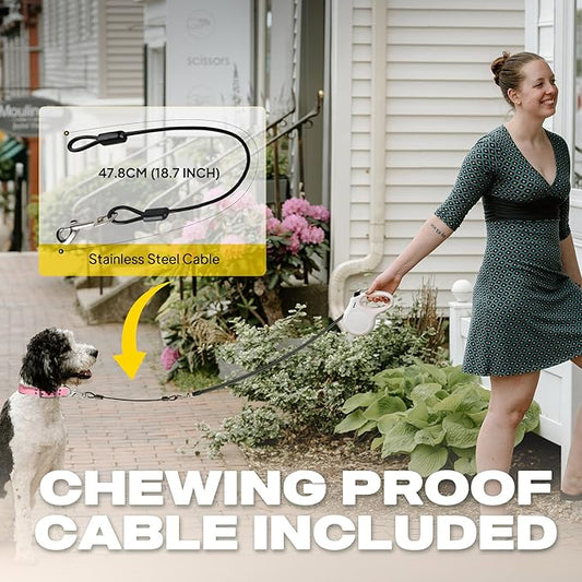 Fida Retractable Dog Leash, 16 ft Dog Walking Leash for Small Dogs up to 26lbs, Tangle Free, White