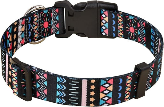 Dog Collar with Bohemia Floral Tribal Geometric Patterns - Soft Ethnic Style Collar Adjustable for Small Medium Large Dogs(Black Bohemia,XS)
