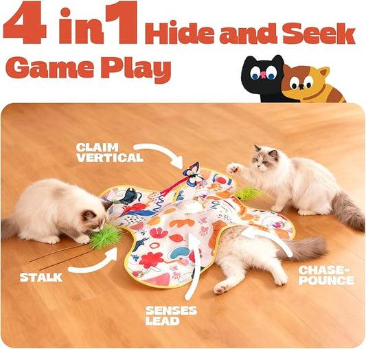 Cat Toys for Indoor Cats, 4in 1 Interactive Cat Toys Rechargeable with Butterfly, Feathers, Setaria Viridis, Real Animal Squeaky, Indoor Kitty Exercise Automatic Pet Toys with 2 Covers for All Breeds
