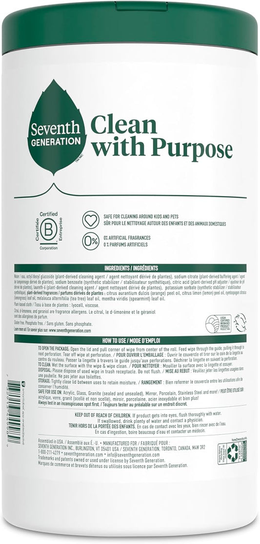 Seventh Generation Multi-Surface Cleaning Wipes, Garden Mint Scent, Cuts Grease & Grime, 35 Wipes