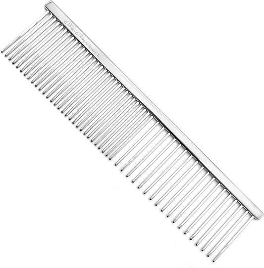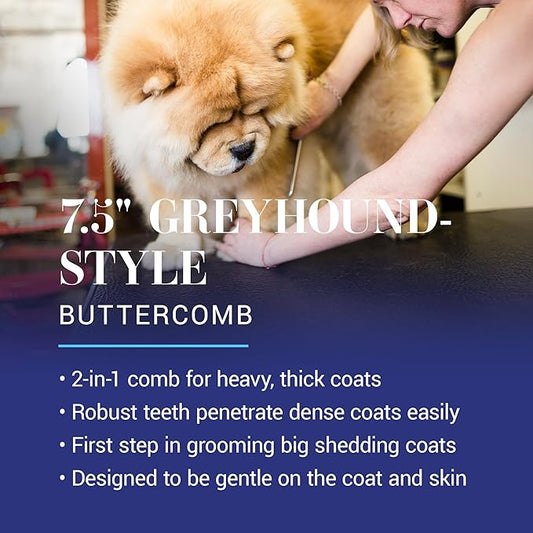 Chris Christensen 003 7.5 in. F/XC Greyhound-Style Butter Comb, Groom Like a Professional, Rounded Corners Prevent Friction and Breakage, Solid Brass Spin with Steel Teeth, Chrome Finish.