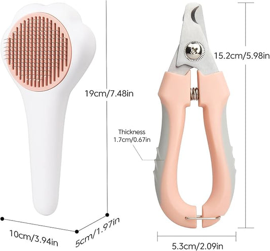 Self-Cleaning Cat Brush for Shedding with Cat Nail Clipper 2-Piece Set,Cat Brushes for Indoor Cats and Cat Nail Trimmer with Safety Guard Protective,Pet Grooming Kit for Cats and Dogs