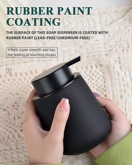 White Foam Hand Soap Dispenser - 12Oz Ceramic Foaming Soap Dispenser with Easy-to-Press Black Pump, Reusable and Refillable Liquid Lotion Dish Soap Dispensers for Bathroom, Kitchen (Rubber Paint)