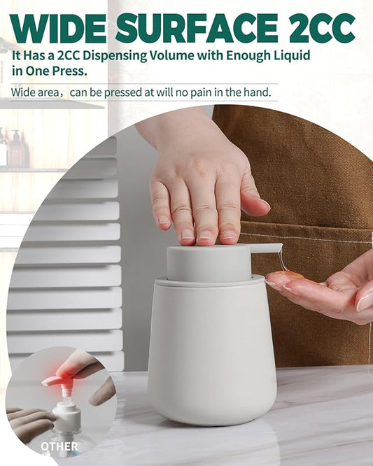 BosilunLife Grey Lotion Dispenser - Modern Ceramic Soap Dispenser Bathroom 12 oz Bottles Lotion Hand Pump Dispenser Black Pump Dish Liquid Dispenser for Kitchen Hand Wash Dispenser