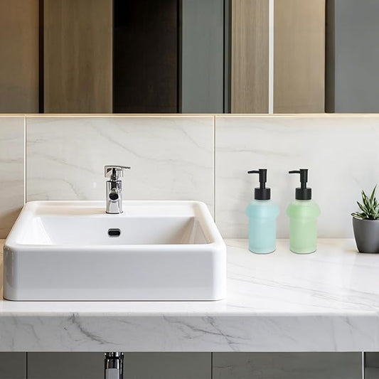 Glass Refillable Empty Bottle Container with Rust-Proof Plastic Pump Hand Soap Dispenser, 2Pcs Liquid 9.3oz Soap Dispenser for Bathroom and Kitchen (Matte)