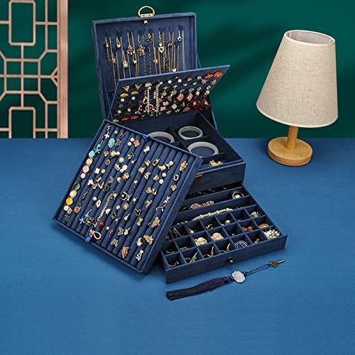 Jewelry Organizer 5 Layers Velvet Square Jewelry Box Women Necklace Ear studs Display Bangles Large Jewelry Storage Case Drawer GY306 (Navy)
