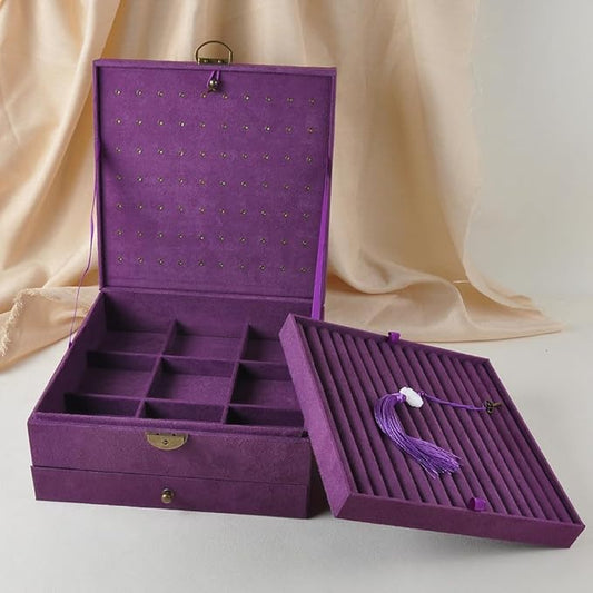 Jewelry Organizer 5 Layers Velvet Square Jewelry Box Women Necklace Ear studs Display Bangles Large Jewelry Storage Case Drawer GY306 (purple)
