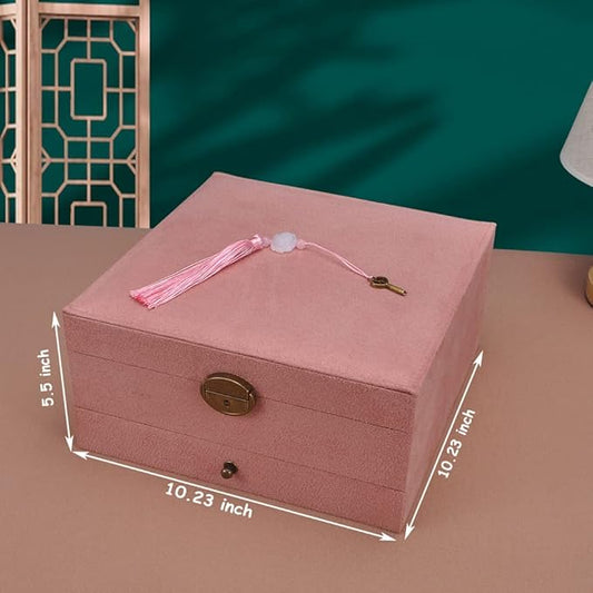 Jewelry Organizer 5 Layers Velvet Square Jewelry Box Women Necklace Ear studs Display Bangles Large Jewelry Storage Case Drawer GY306 (Pink)