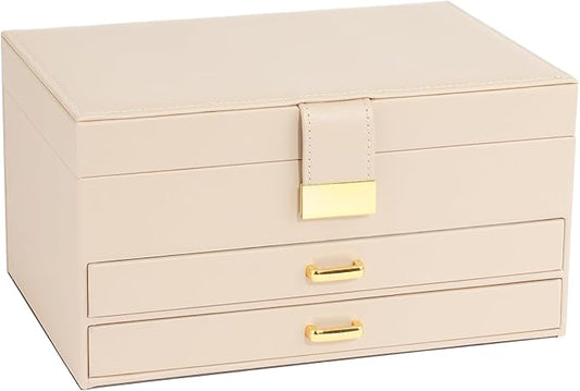 Jewelry Box, 3-Tier with 2 Drawers, Beige, Modern, Women's Jewelry Organizer