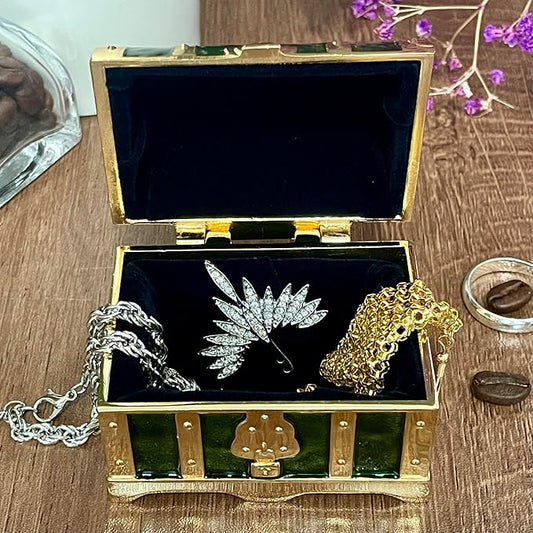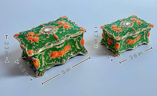 Truewon Jewelry Chest Rose Pastoral Style Metal Box Trinket Vintage Trinket Gemstone Storage Tray Treasure Souvenir Gift Case for Girls Women (Golden Starshine Green, Small)