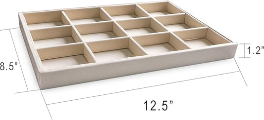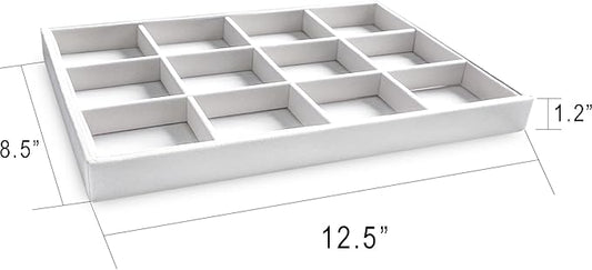 Frebeauty Stackable Velvet Jewelry Organizer Trays for Drawers Inserts Jewelry Storage Tray Display Case, Stud Earrings Bracelets Necklace Rings Accessories Trays for Women(Set of 4)(White)