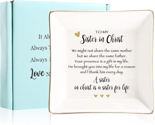 Sister in Christ for Women Christmas Birthday Ring jewelry Dish-Christian Religious Faith Gifts for Friends Bestie Friendship-A Sister in Christ is Sister in life