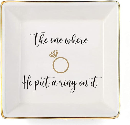 Engagement Gifts for Women Ring Dish Tray - Bride to Be Newly Engaged Gifts-The One Where He Put A Ring On It - Funny Wedding Gift