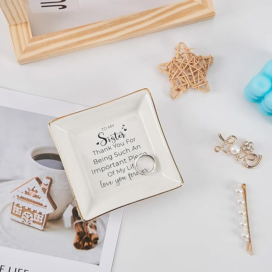 Sister Gifts, To My Sister Ring Tray Jewelry Dish, Sister Birthday Gifts for Sister Christmas Mother's Day Valentines Gift for Sisters from Sister Brother