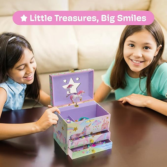 Jewelkeeper Enchanting Unicorn Musical Jewelry Box for Girls - Sparkling Rainbow Design Music Box with 2 Pullout Drawers to Store Earrings, Necklace and Bracelets - Plays The Beautiful Dreamer Tune