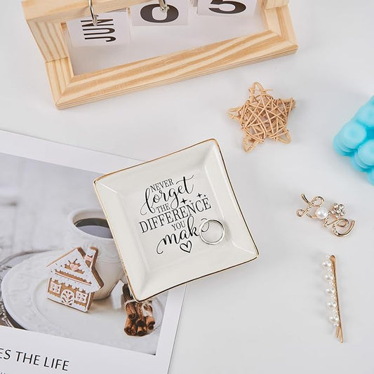 Thank You Gifts for Women Coworker Nurse Teacher Employee Appreciation Gift, Goodbye Farewell Going Away Retirement Gift for Woman Boss - Never Forget The Difference You Make Jewelry Dish