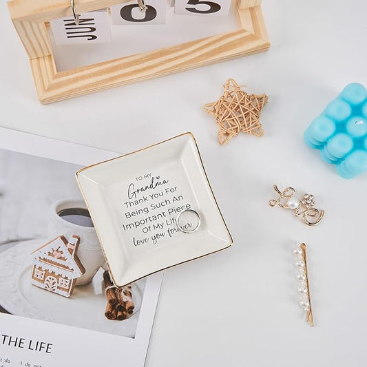 Grandma Gifts from Grandkid, To My Grandma Ring Dish Jewelry Tray, Birthday Christmas Valentines Mothers Day Gift for Grandma from Granddaughter Grandson