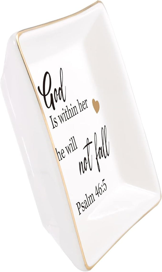 Religious Gifts for Women Christian-Ceramic Ring Dish -God is Within Her She Will Not Fall, Christian Gifts for Mom Sister Aunt