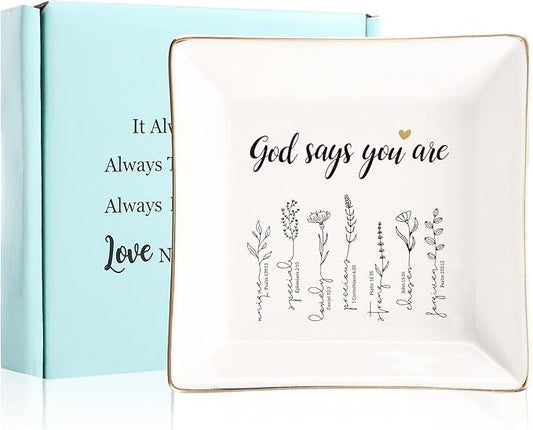 God Says You Are Flower Ring Dish-Christian Religious Spiritual Gifts for Women Friends Mom Sister Christmas Birthday