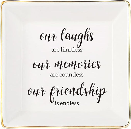 Endless Friendship Gifts Ceramic Ring Dish Jewelry Tray,Birthday Gifts For Best Friend-Our Laughs Are Limitless,Our Memories Are Countless,Our Friendship Is Endless
