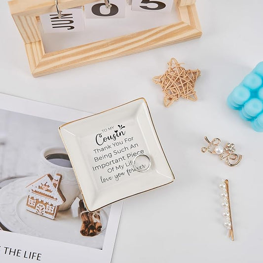 Cousin Gifts for Women, To My Cousin Trinket Tray Jewelry Dish, Cousins Birthday Gifts for Cousin Christmas Mothers Day Valentines Gift - Thank You for Being Such An Important Piece of My Life
