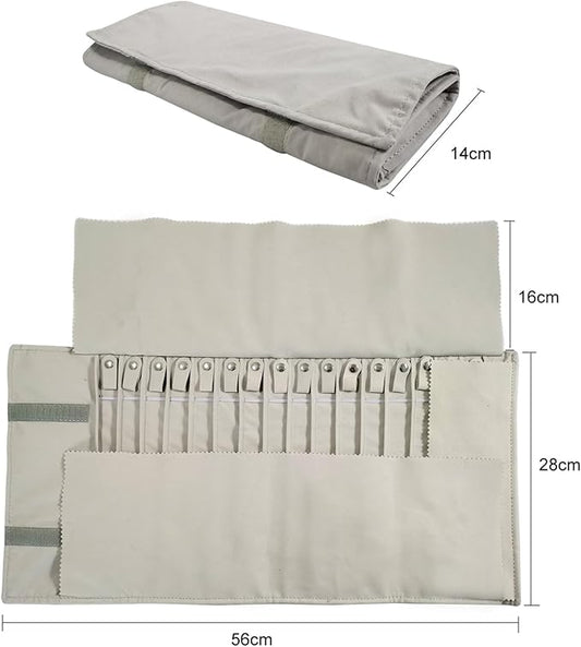 Portable Jewelry Roll Untangled Secure Necklace Travel Storage Bag Displays Holder 16 Chain (Beige)