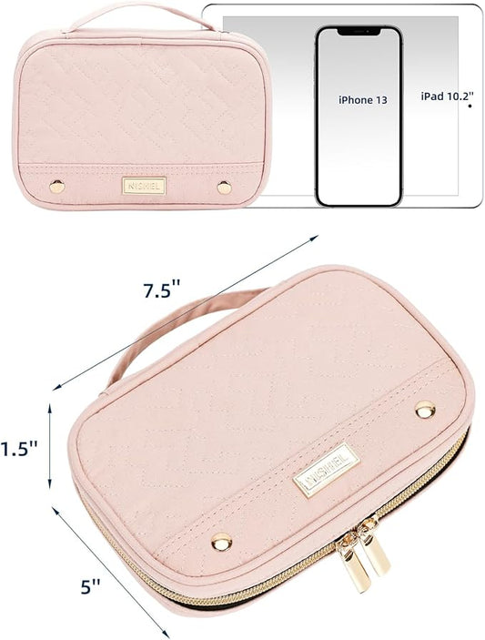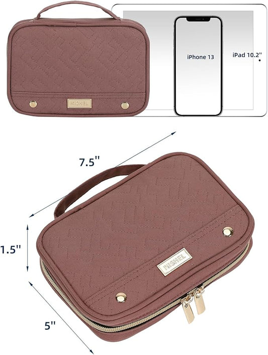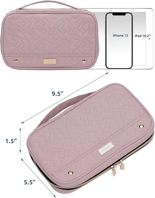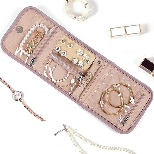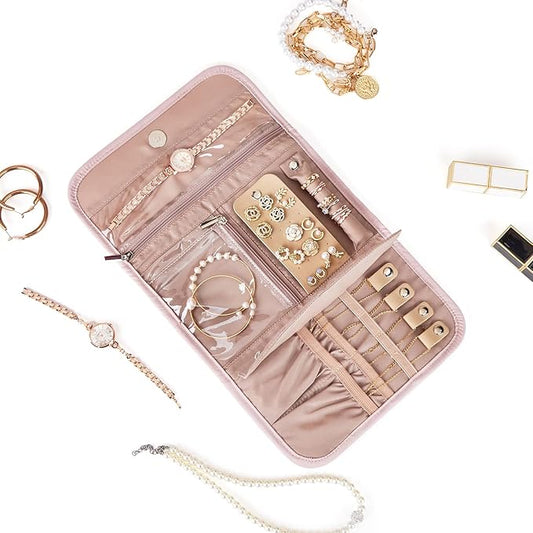 NISHEL Travel Jewelry Case, Holiday Organizer for Necklaces, Earrings, Rings, Bracelets, Watch, Pink
