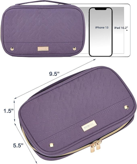 NISHEL Travel Jewelry Case, Holiday Organizer for Necklaces, Earrings, Rings, Bracelets, Watch, Purple
