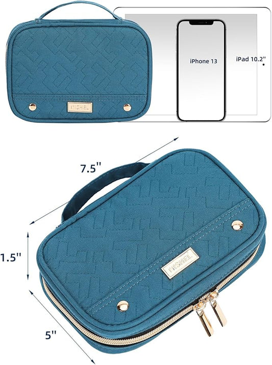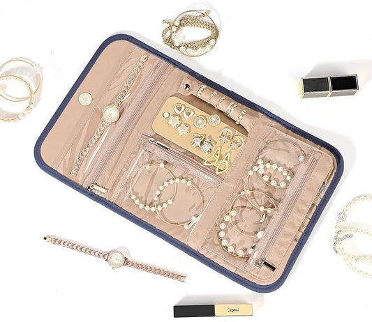 NISHEL Travel Jewelry Case, Holiday Organizer for Necklaces, Earrings, Rings, Bracelets, Watch, Lake-Blue