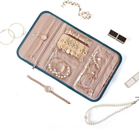 NISHEL Travel Jewelry Case, Holiday Organizer for Necklaces, Earrings, Rings, Bracelets, Watch, Aegean-Blue