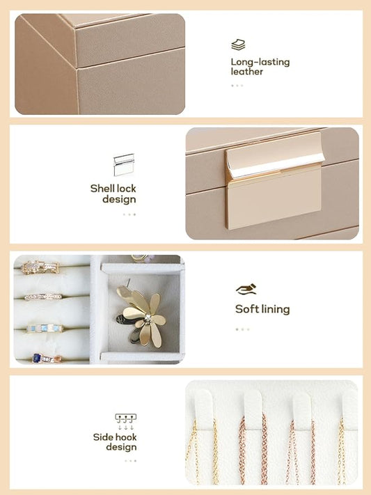 Vlando Jewelry Box Organizer for Women Girls, 2 Layer Jewelry Case with Lock,Jewelry Storage Earrings Necklace,Rings,Gift for Teachers Wedding Birthday Gifts-Cream White