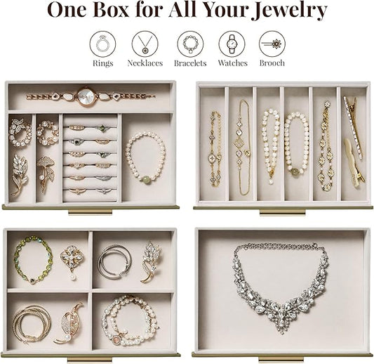 Jewelry Organizer Box, Women Jewelry Box White Jewelry Case 3-Layer with 3 Drawers, Jewelry Boxes for Women Jewelry Organizer, White